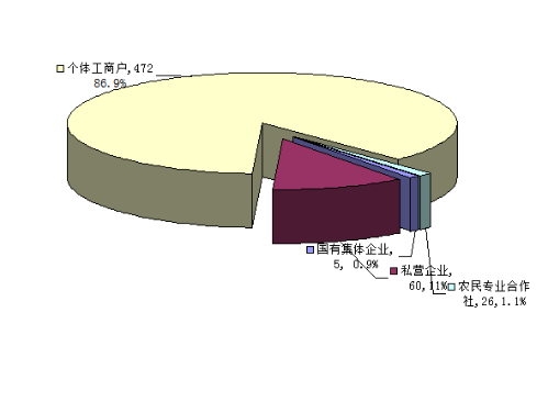 本月我县市场主体与上月相比呈增加趋势,私营企业比上月同期增长900%,个体工商户与上月同期相比增长2147.6%;农民专业合作社与上月同期相比增长200%。