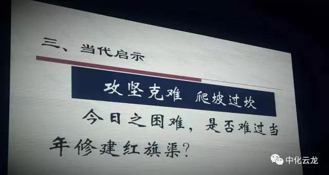 农业事业部半年会在红旗渠召开,为的就是学习红旗渠精神,树立艰苦奋斗的理想信念,成就MAP战略的美好梦想。王总传达总部半年会精神,带领全体干部员工认真解读红旗渠精神的现实意义。同时指出要认真思考,把红旗渠精神融入中化云龙建设及事业发展中,这是我们要长期去思考去实践的事情。