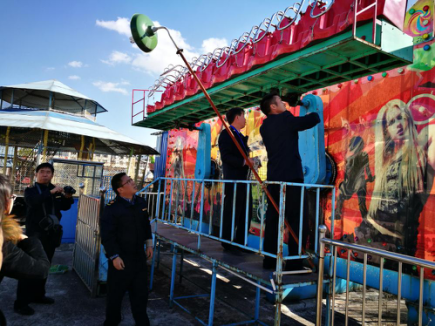 春节临近,为保障广大人民群众出行和娱乐安全,2018年1月15日,寻甸县市场监督管理局牵头组织安监局、文体广电旅游局等多部门对辖区仁德街道办南磷小区旁的露天游乐场内的19台特种设备进行安全隐患整治。