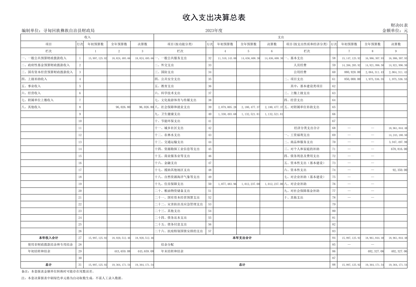 项目名称:寻甸回族彝族自治县财政局2023年部门整体支出 | |