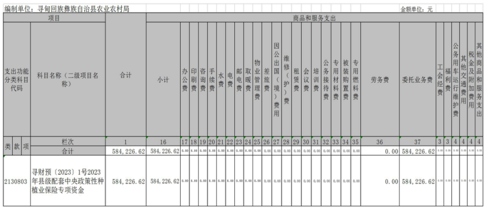 寻甸县2023年中央政策性种植业保险专项资金项目支出绩效目标表