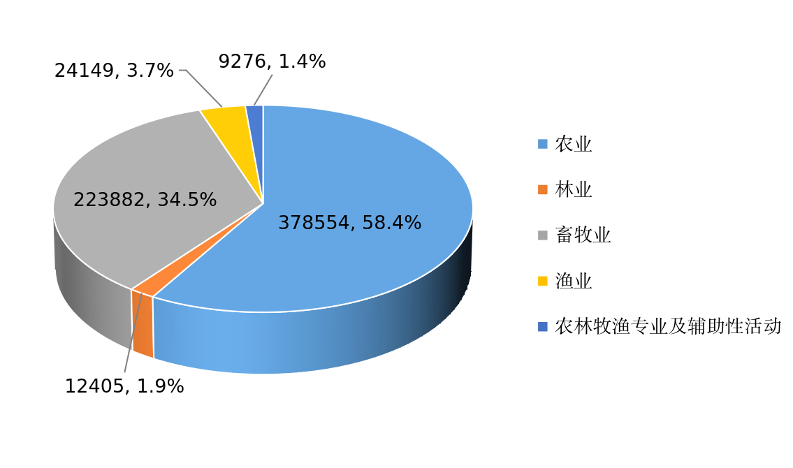 全县实现农林牧渔业总产值648266万元,比上年增长3.1%,其中农业总产值为378554万元,比上年增长4.1%;林业总产值为12405万元,比上年下降10.8%;畜牧业总产值为223882万元,比上年增长1.6%;渔业总产值为24149万元,比上年增长5.7%;农林牧渔专业及辅助性活动产值为9276万元,比上年增长9.8%。实现农林牧渔业增加值379094万元,比上年增长3.0%。
