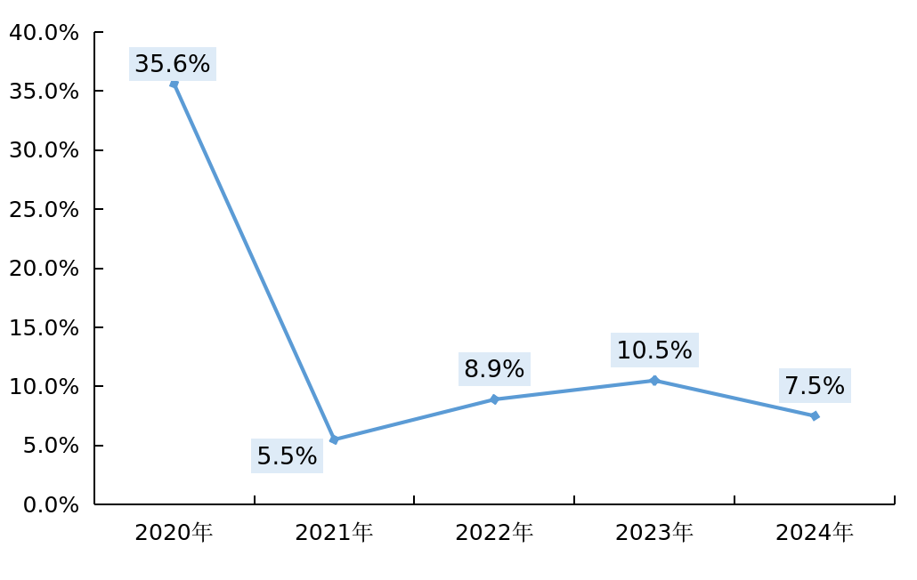 图4 2020-2024年寻甸县规模以上工业增加值增速趋势图