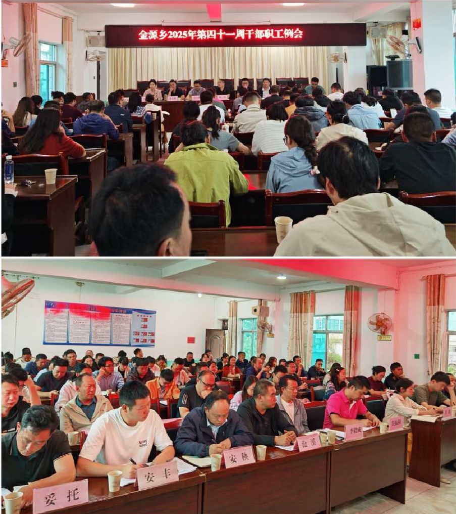 1.10月13日,金源乡召开2025年第四十一周干部职工例会,会议对“两保”收缴、重点项目建设、社会治理(命案防控)及作风建设等近期重点工作进行安排部署,并组织公职人员酒驾典型案例警示教育。会议强调:一是扎实推进“两保”收缴工作,要加强政策宣传,紧盯时间节点与任务要求,落实有效措施,做到应保尽保;二是深入排查化解矛盾纠纷,要坚持早发现、早介入、早化解,努力将矛盾解决在基层、化解在萌芽状态;三是持续强化命案防控,要加强重点领域和人群管控,提升社会面巡逻防范力度,坚决遏制恶性案件发生;四是深化普法强基补短板专项行动,要创新普法方式、增强普法实效,不断提升全民法治素养,夯实全乡法治基础;五是提升集镇精细化管理水平,要聚焦环境卫生、车辆停放、占道经营等问题开展集中整治,营造整洁、有序、文明的集镇环境。