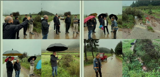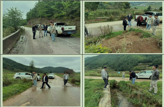 9.10月23日,副乡长黄焜、武装部长朱会平、党群服务中心负责人荀天党及水利管理岗工作人员赴马店村委会大平地片区,开展道路塌方与自来水断供情况专项查勘。现场重点核查塌方路段受损范围、路面结构安全隐患,同步排查供水管网断裂点位与停水影响区域,制定针对性的修护措施马店村委会工作人员全程陪同。
