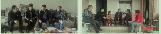19.10月26日,武装部长朱会平带领党群服务中心负责人荀天党,赴马店村委会对监测户陈应普、阮天平开展入户走访,村委会村支书与监委会主任全程陪同。