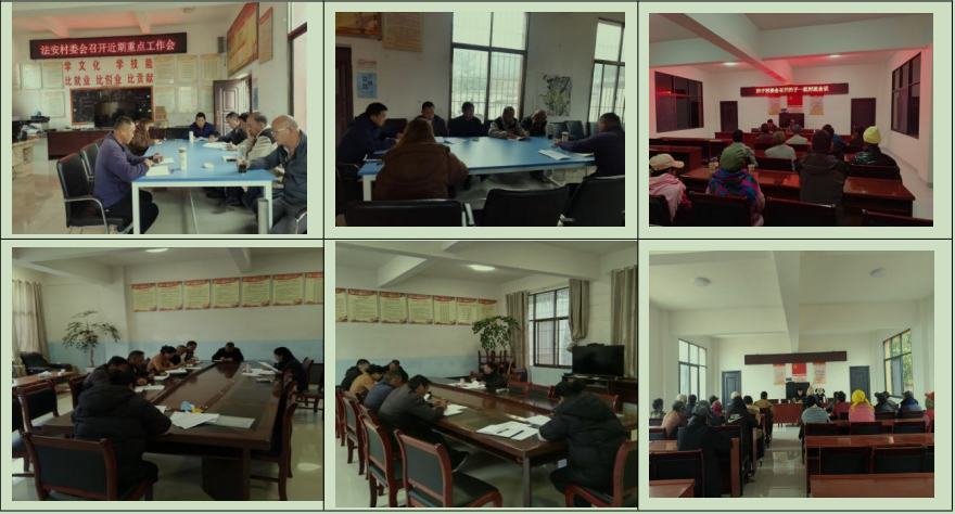 1.11月18日-19日及21日,法安、落水洞、凹子村委会组织村委会人员、驻村队员召开近期重点工作部署会。会议聚焦2026年城乡居民基本医疗保险参保缴费、雨露计划申报及宣传、安全生产工作(道路交通安全、预防民房火灾及一氧化碳中毒工作)、省内外务工交通补贴申请工作等重点工作进行安排部署。