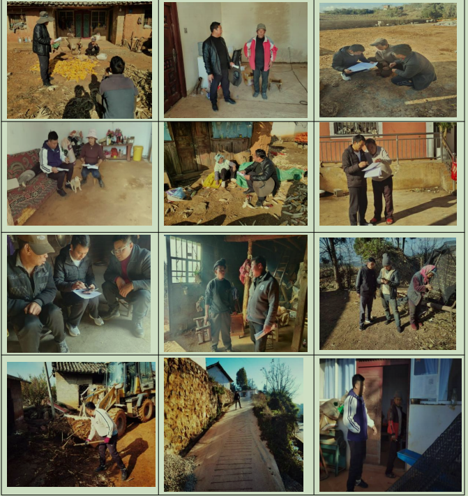 4.12月12日,宣传委员王佳仙带领党政办工作人员到联合村委会,与村“两委”大岗位人员及驻村工作人员组建专项工作组,分工协作深入监测户、低保户、脱贫户等重点家庭,推进迎检前期准备工作。工作人员紧扣迎检要求,逐户核查人口、健康、就业、就学等基础信息,摸清农户困难诉求;解读医保、低保、产业帮扶等惠民政策,确保群众知晓会用、红利直达。同时,指导督促农户整治庭院及房前屋后环境卫生,改善村容户貌,提升人居环境与群众生活质量,增强村民获得感、幸福感和满意度,为迎检筑牢基础。