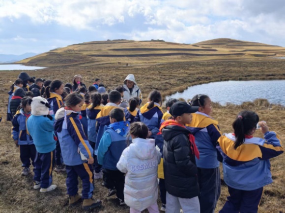 实践环节进一步推动知识向行动转化。在黑颈鹤核心观测区,师生在指导下使用望远镜观察黑颈鹤,学习种群统计与行为记录等监测方法,完成“科普到实践”的跨越;在羊塘海子湿地,大家实地了解湿地生态功能,认识其在水源涵养、鸟类栖息中的关键作用,并化身“湿地卫士”清理沿途垃圾,以实际行动守护湿地环境;攀登秤砣石的过程中,师生在挑战体能的同时体验巡护艰辛,沿途开展垃圾清捡,让环保意识在脚步中扎根。