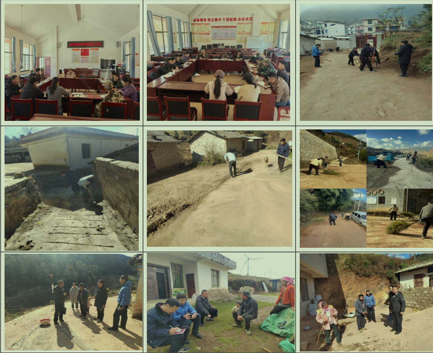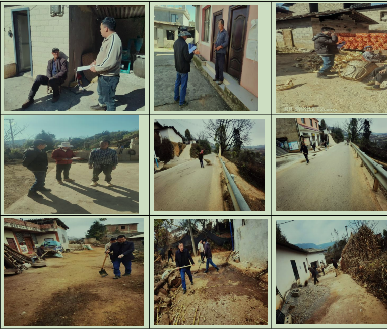 4.12月16日及18日,联合村委会工作人员到麻塘、大山、石灰窑、老皮凹等村组推进迎检工作。实地核查村容村貌、庭院及户内卫生情况,同步部署环境卫生整治、医保收缴、社会维稳、生产安全等重点任务,现场交办问题、明确整改要求,确保各项工作落地见效。
