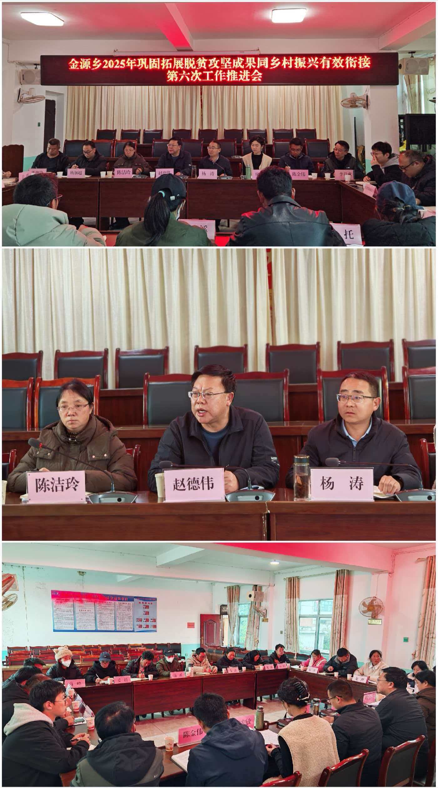 1.12月17日,金源乡召开2025年巩固拓展脱贫攻坚成果同乡村振兴有效衔接第六次工作推进会议。县人大常委会副主任、金源战区指挥长赵德伟,县社会帮扶服务中心到会指导。会议听取各村近期工作进展情况汇报,针对存在问题进行业务指导和解答,进一步凝聚共识、明确工作方向。会议强调:一是持续强化防止返贫动态监测和常态化排查,做到“应纳尽纳、应保尽保”;二是注重预警信息分析研判与佐证材料收集,扎实开展问题整改“回头看”;三是深化乡村干部“一口清”学习培训,切实掌握村情民情、政策依据和工作流程;四是加大惠民政策和工作程序宣传力度,不断提升群众知晓率与参与度;五是持续推进农村人居环境整治,突出主次干道、通村道路和重点农户周边环境改善。