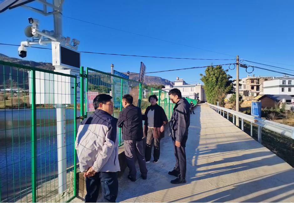▲县水务局水资源管理站到樱桃湾水库至河口中学段及盐井冲小坝塘实地查看项目修复及改造情况。镇水利管理岗参加。