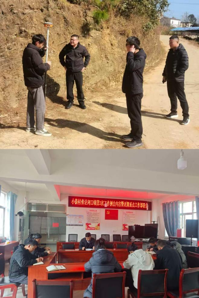 ▲副镇长张宇峰到水冒天村委会开展2026年以工代赈项目实地测绘工作。项目管理岗,第三方公司参加。