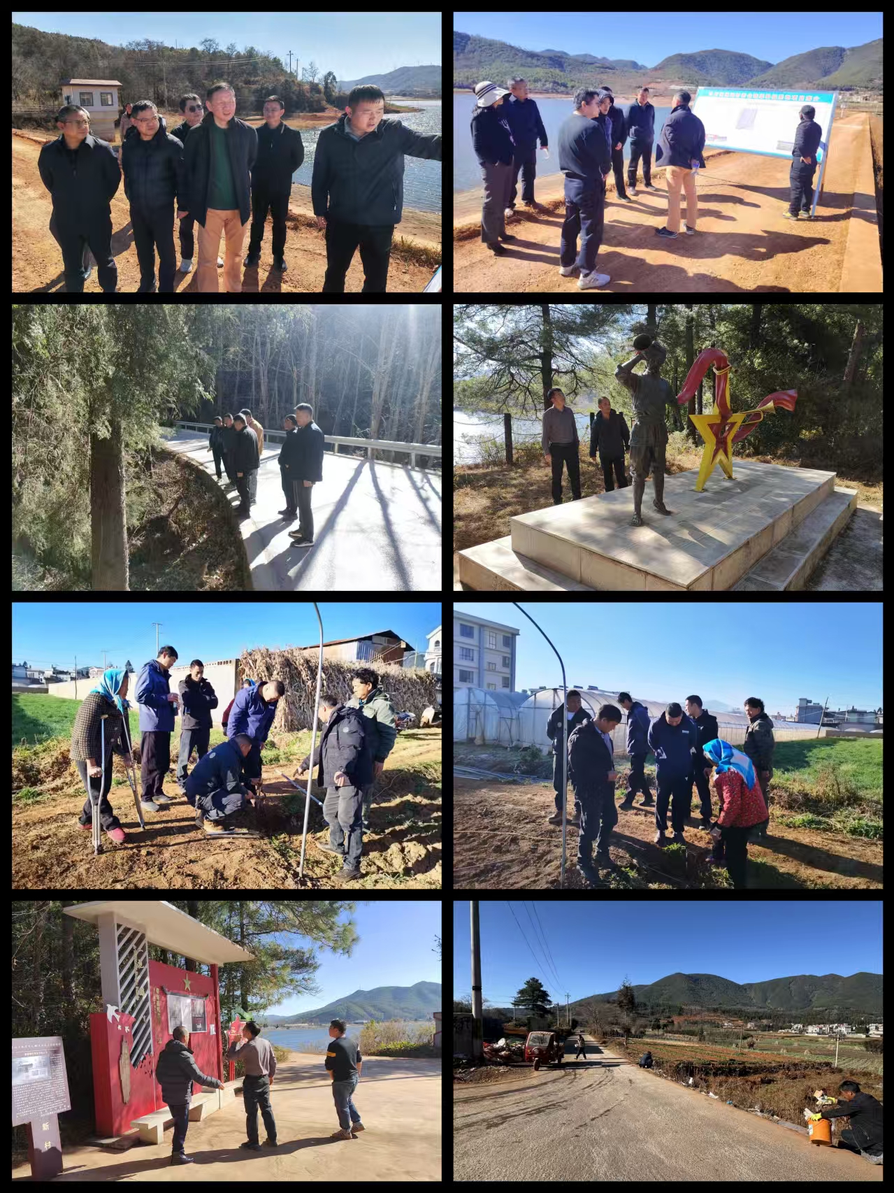 ★镇宣传委员潘开波带领文化旅游岗和广告公司技术人员前往红军长征纪念亭,现场查看展板内容缺损情况,并组织开展补字工作;