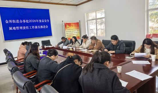 2026年1月22日,金所街道办事处组织召开2026年食品安全属地管理责任工作落实推进会,金所市场监管所、金所街道办事处各社区食品安全信息员参加会议。