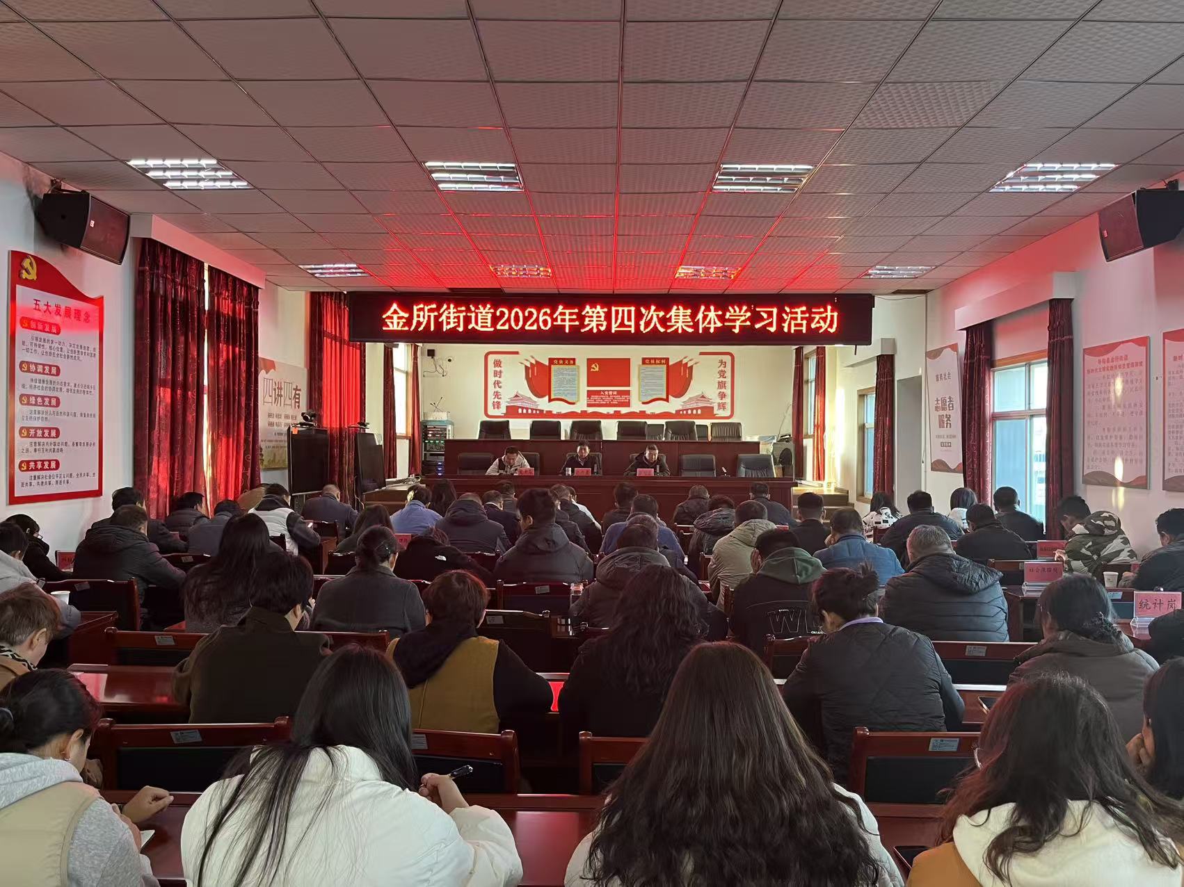 1月26日上午,金所街道组织召开2026年第四次集体学习会议。街道班子成员,各岗位、垂管单位负责人,全体干部职工参加。会议领学了《关于加强和优化设施农业用地管理的通知》内容,传达学习了寻甸县2026年道路交通安全工作会议精神,并对用火用电安全、食品安全、学生假期安全、企业生产安全、矛盾纠纷排查化解、护林防火、潘所海应急抽排水、年度考核、民主生活会筹备等近期重点工作进行了安排部署。