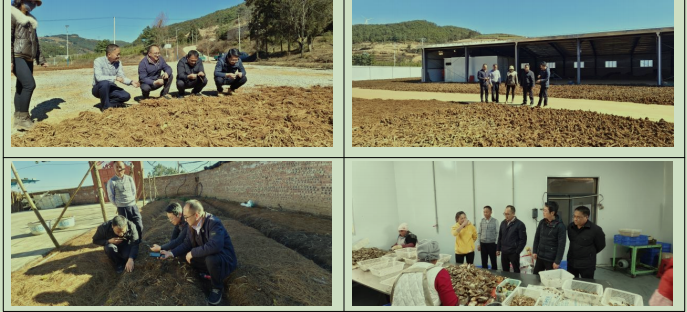 调研组一行先后深入中药材晾晒场、冰球子育苗基地、野生菌加工厂及冰球子农户种植基地,通过实地察看、现场询问等方式,详细了解中药材加工晾晒、特色种苗培育、野生菌加工生产及冰球子规模化种植等情况。期间,与经营主体负责人深入交流,全面掌握产业规模、运营模式、市场销售等情况,重点了解当前存在的困难和问题,并结合实际提出指导意见。