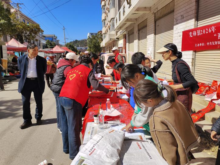 近日,为弘扬中华优秀传统文化,营造喜庆祥和的节日氛围,丰富群众精神文化生活,先锋镇成功举办了2026年“我为群众办实事——文化进万家”暨春节“迎新春·送春联”文化惠民活动。此次活动邀请了本土书法爱好者现场挥毫泼墨,为群众书写春联、送春联,同时此次活动还特别设置了小朋友参与环节,让孩子们亲身体验传统文化的魅力。