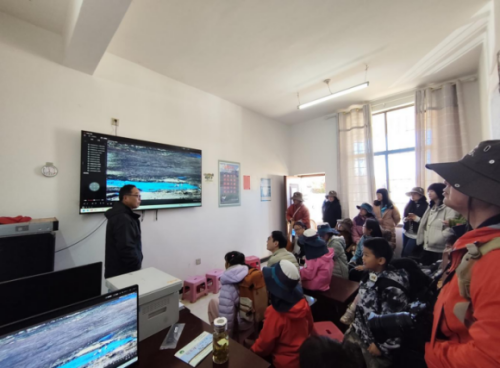 寻甸黑颈鹤省级自然保护区作为黑颈鹤最南端的越冬地,生态区位独特,是开展野生动植物科普教育的优质自然课堂。本次研学活动紧扣世界湿地日主题,针对青少年认知特点,设计了“科技观鹤+湿地探秘”双环节体验。在监测中心,孩子们通过视频监控系统实时观察黑颈鹤栖息状态,管护局工作人员结合多年监测数据,生动讲解鹤类迁徙规律、生活习性及其保护价值,让青少年在感受科技护鹤的同时,系统了解相关保护知识。在做好安全保护和生态规范的前提下,工作人员带领青少年深入黑颈鹤核心栖息地开展实地观察。孩子们亲眼见到黑颈鹤在湿地中觅食、栖息的自然场景,亲身感受鹤类生存的真实环境,直观理解湿地生态系统与野生动植物生存的密切关系。这种实地体验进一步激发了他们对黑颈鹤及生物多样性的探索兴趣,强化了“热爱自然、守护生态”的责任意识。