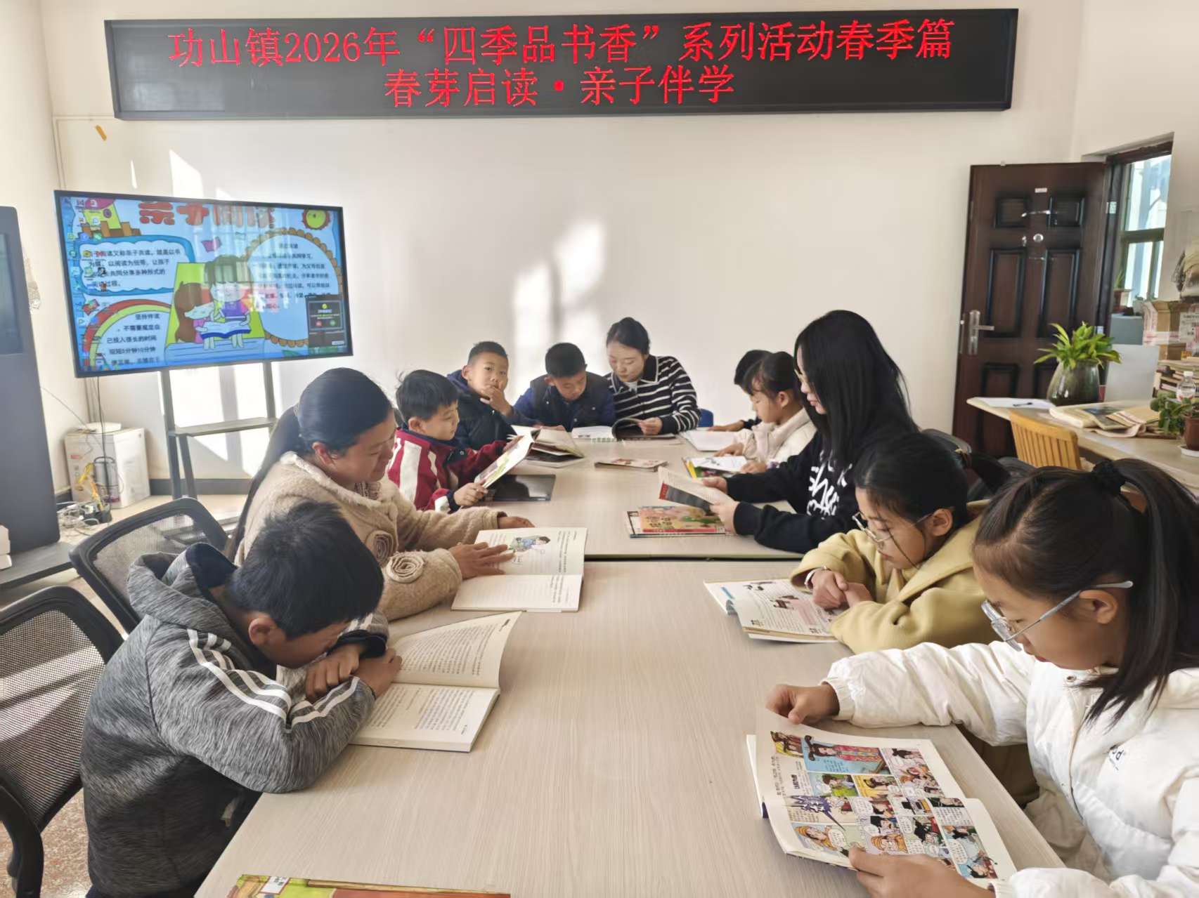 2月5日上午,功山镇党群服务中心文化旅游岗启动2026年度“四季品书香”系列活动。春季篇以“春芽启读·亲子伴学”为主题,旨在通过亲子共读,培育阅读新芽。