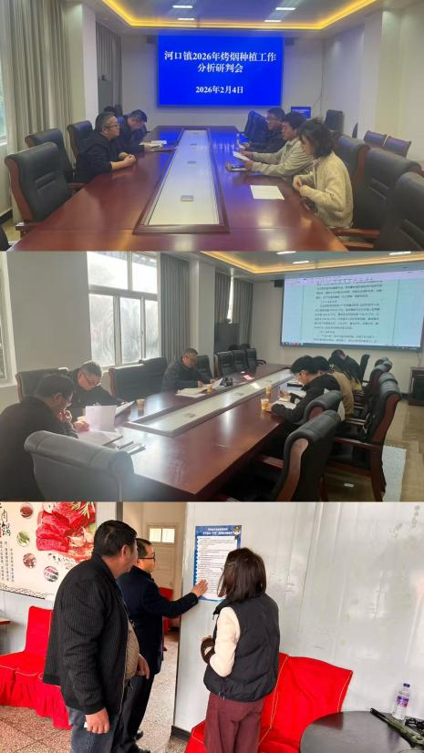 ▲党委书记颜华东,党委副书记、镇长陈耿仲召开河口镇2026年烤烟种植工作分析研判会,安排下步烤烟种植工作。人大主席王俊参加。