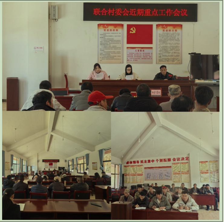 1.2月2日,党委委员、宣传委员王佳仙带领办公室相关工作人员赴联合村委会,主持召开近期重点工作部署会议。村委会“两委”班子成员、各村民小组组长及相关工作负责人参加会议。对近期重点工作作出全面安排部署:一是紧盯安全生产与民生保障,要求加强春节前后消防安全、用电用气安全排查,重点关注困难群众生活需求,及时解决实际问题;二是推进乡村振兴重点任务,明确春耕备耕、人居环境整治等工作的时间节点与责任分工,确保各项工作有序落地。
