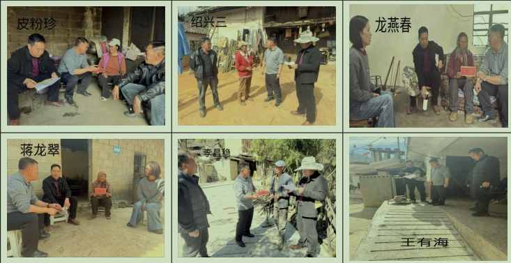 4.2026年2 月 5 日,呈贡区委编办一行赴落水洞村委会开展座谈交流,并深入双龙潭小组走访慰问 “挂包帮” 定点帮扶对象。详细了解脱贫户生产生活状况与实际困难,送上米、油等生活物资和新春祝福,切实把组织关怀送到群众身边。落水洞村委会工作人员及到村任职选调生陪同。