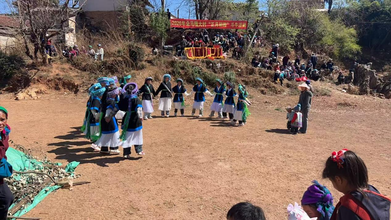 朵马嘎村委会分会场更是掀起了新春文体狂欢的热潮,白泥井、小白龙村、马嘎村相继开展集文艺演出、斗牛、篮球、彝族篝火晚会于一体的10场活动特色文体活动,全部由村民自发组织、自愿参与,让彝乡的春节充满运动活力与浓郁的民族风情。