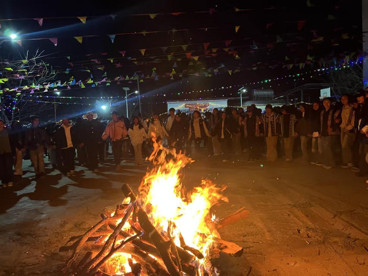 夜幕降临,篝火点燃,彝乡的欢乐迎来新的高潮。熊熊燃烧的篝火旁,彝族同胞们身着节日盛装,手拉手围成同心圆,伴随着热情的音乐和欢快的左脚调,跳起热情洋溢的彝族左脚舞。火光映红了一张张幸福的笑脸,歌声与笑声回荡在乡村夜空,大家在载歌载舞中传递民族情谊、共话新春美好,让民族团结之花在篝火旁绚丽绽放,也让这个新春的年味愈发醇厚绵长。