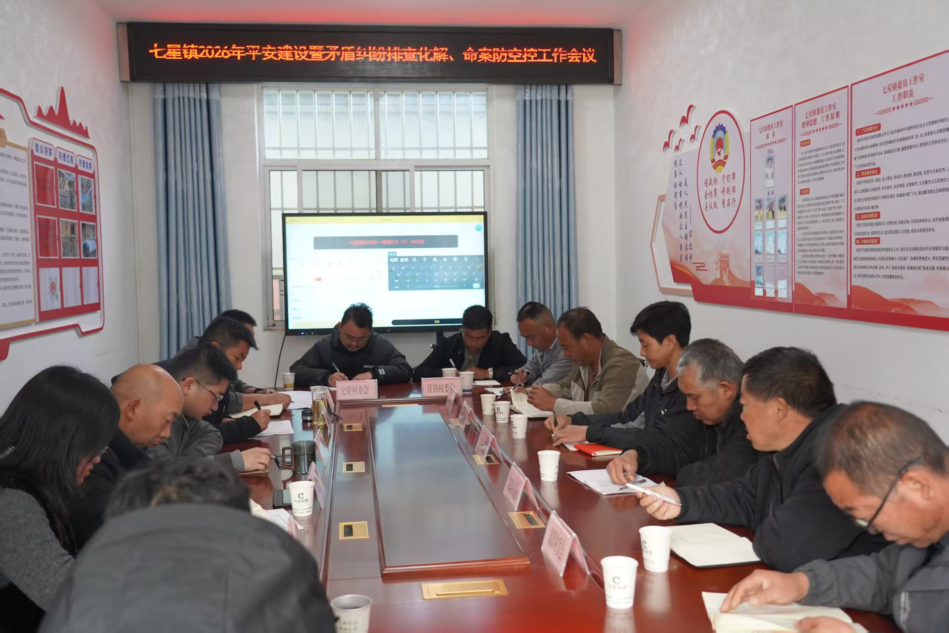 ★3月11日,七星镇召开2026年平安建设暨矛盾纠纷排查化解、命案防控工作会议。会议由党委委员、人大主席、政法委员朱兴林主持,司法所、平安法治办、派出所、网格员参加。