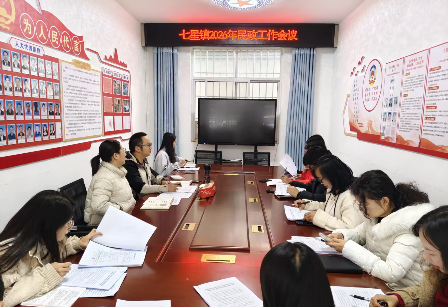 ★3月12日,七星镇召开七星镇2026年民政工作会议。会议由镇党群服务中心主任马会平主持,党委委员、组织委员杨秀兰,民政事务岗工作人员,各村委会民政信息员参会。