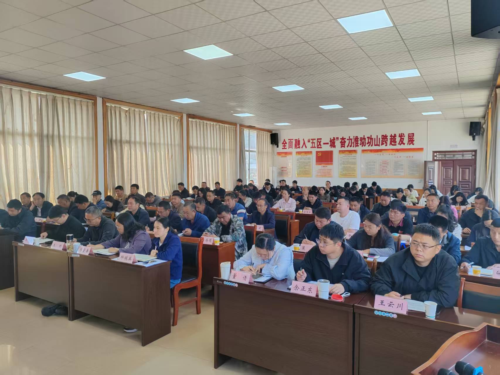 功山镇党政班子成员及副科级领导,各村党组织、垂管单位负责人及全体干部职工参加会议。