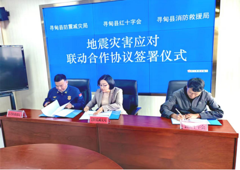 为贯彻落实云南省地震局关于推进各州市地震部门与红十字会、消防救援等部门和行业建立工作联动机制的部署要求,3月5日,寻甸县防震减灾局与寻甸县消防救援局、寻甸县红十字会举行地震灾害应对联动合作协议签署仪式。