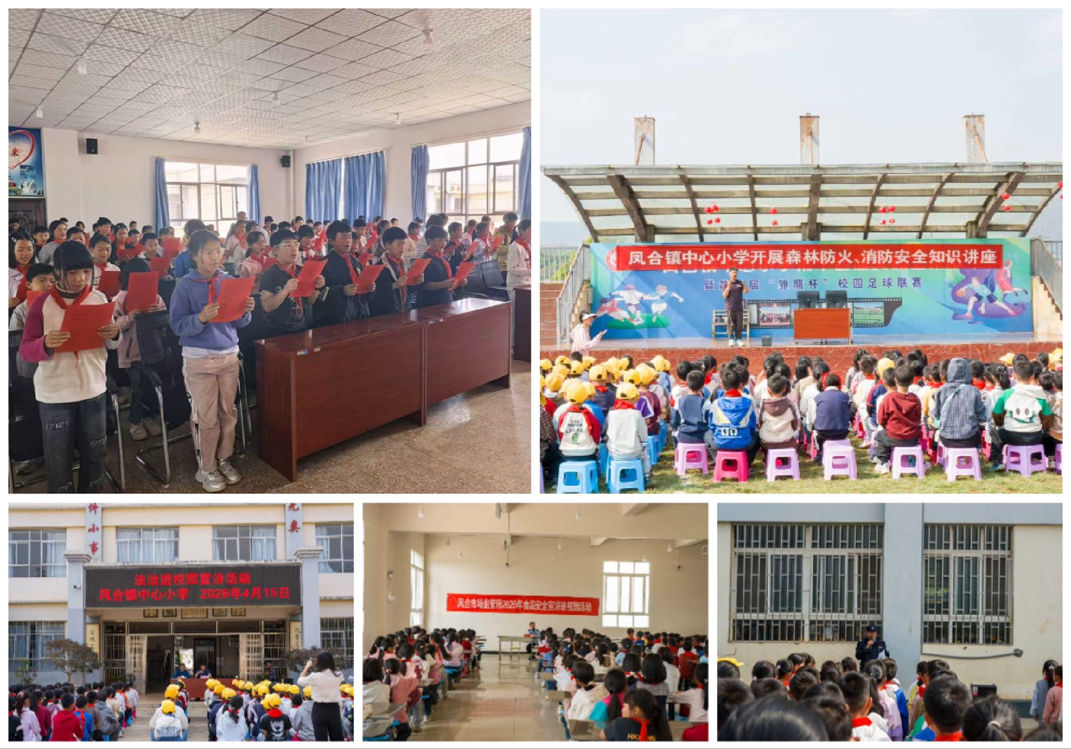 ◆镇党委副书记、代理镇长、凤合中心小学第一书记朱毅到凤合中心小学开展“书记领读 书香校园”暨4·15全民国家安全教育日进校园主题活动。活动中,朱毅现场领读经典篇目,并向师生深刻阐释总体国家安全观的丰富内涵与实践要求,引导师生增强国家安全意识,共同营造书香校园、平安校园的良好氛围。随后司法、市场、林业等部门开展法制教育、护林防火、食品安全等宣传。